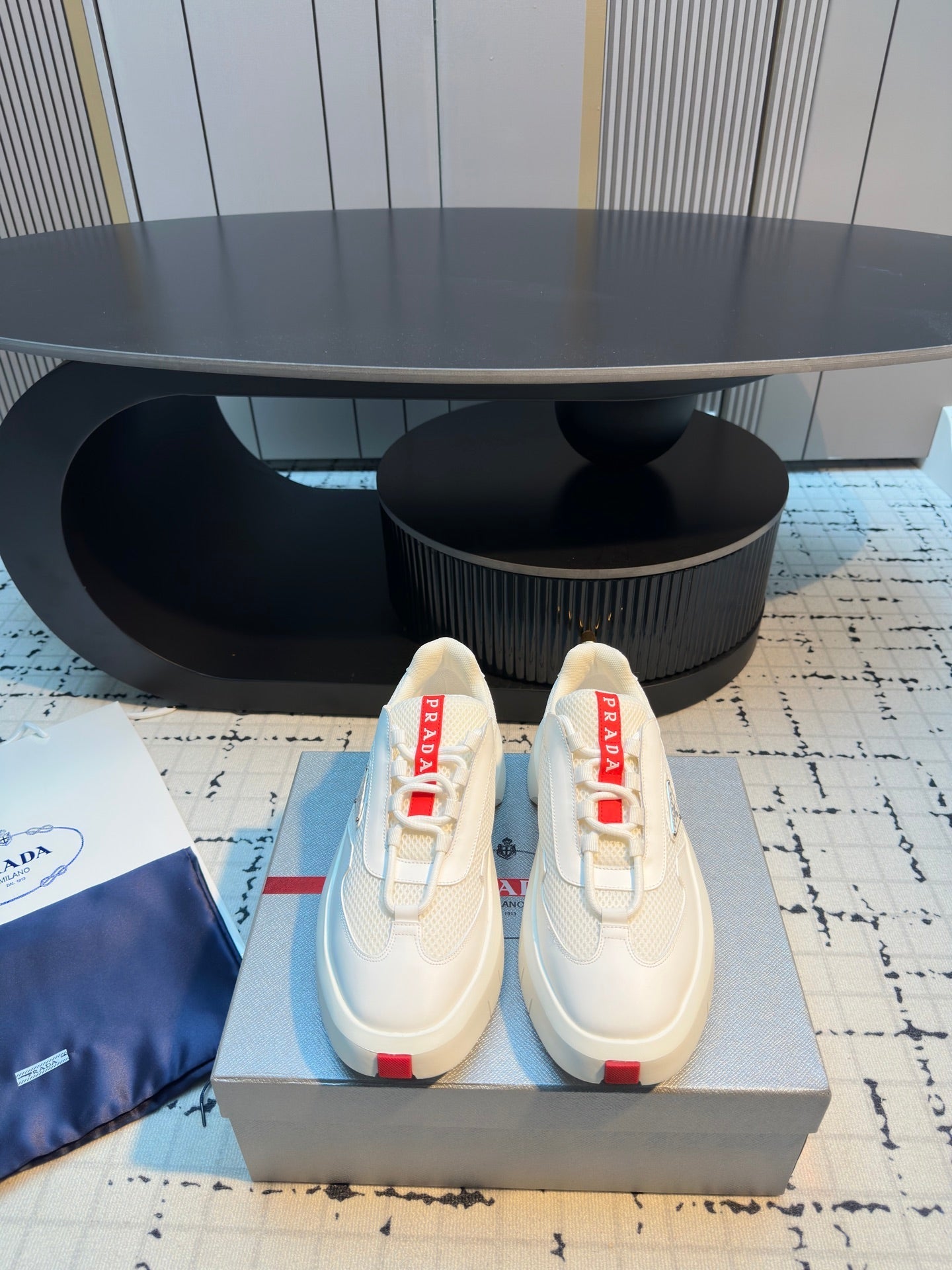 Prada 25s Platform Sneakers White Cowhide 538423