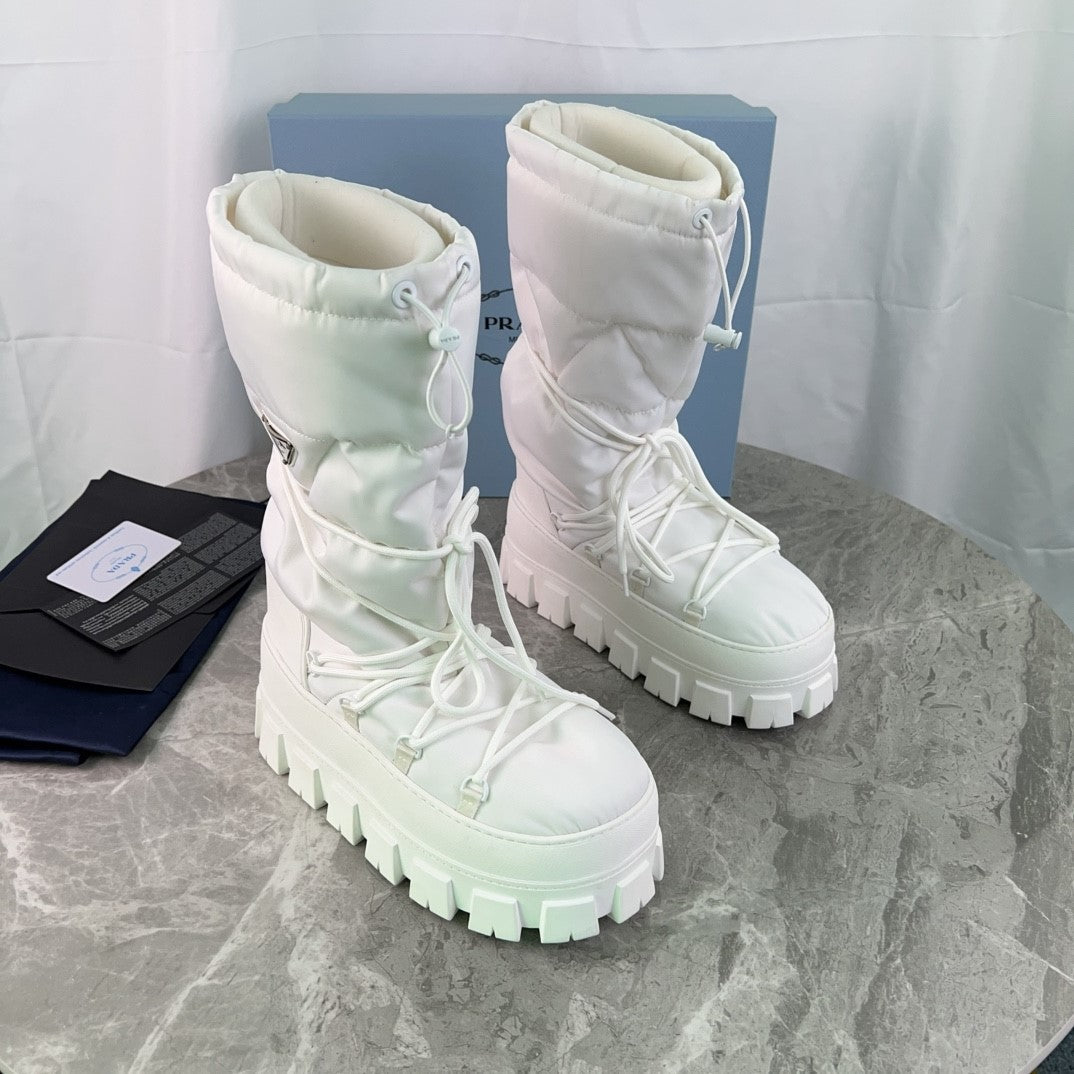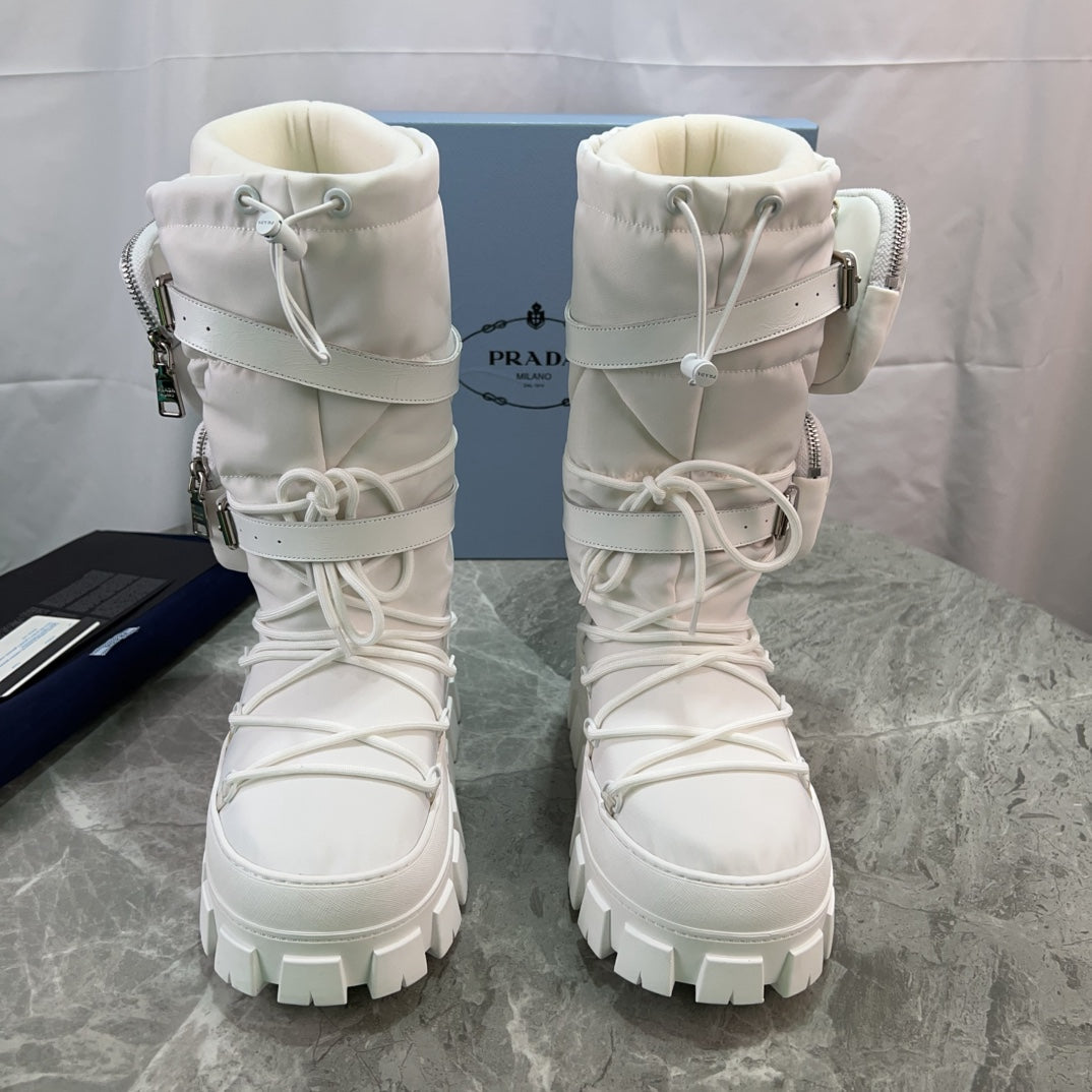 PRA Logo-Plaque Snow Boots White Recycled Polyamide Cowhide 454743