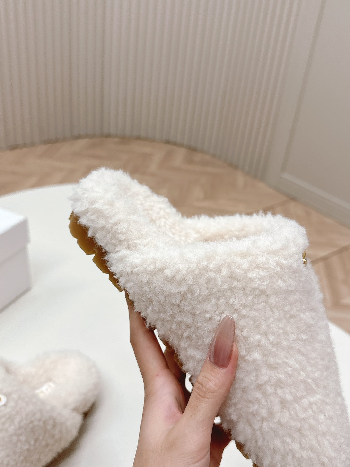 MULES ATTACHED TRIANGLE LOGO IN WHITE SHEARLING