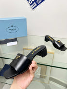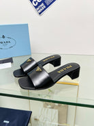 PRA EMBROIDERED SLIDES 40 BLACK CALFSKIN
