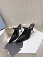PRA HIGH-HEELED MULES BLACK SATIN