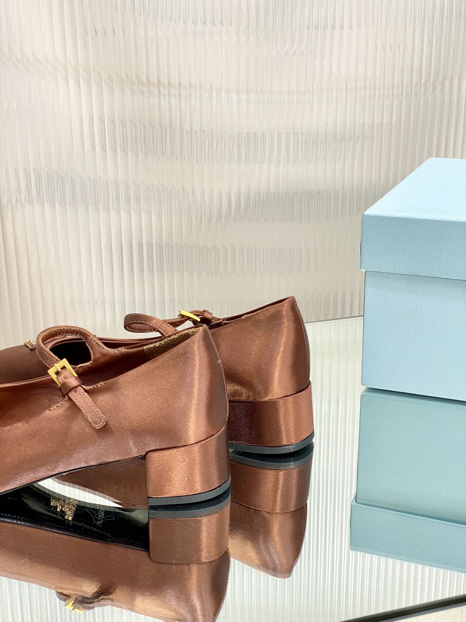 PRA NAPPA MARY JANE PUMPS BROWN SATIN
