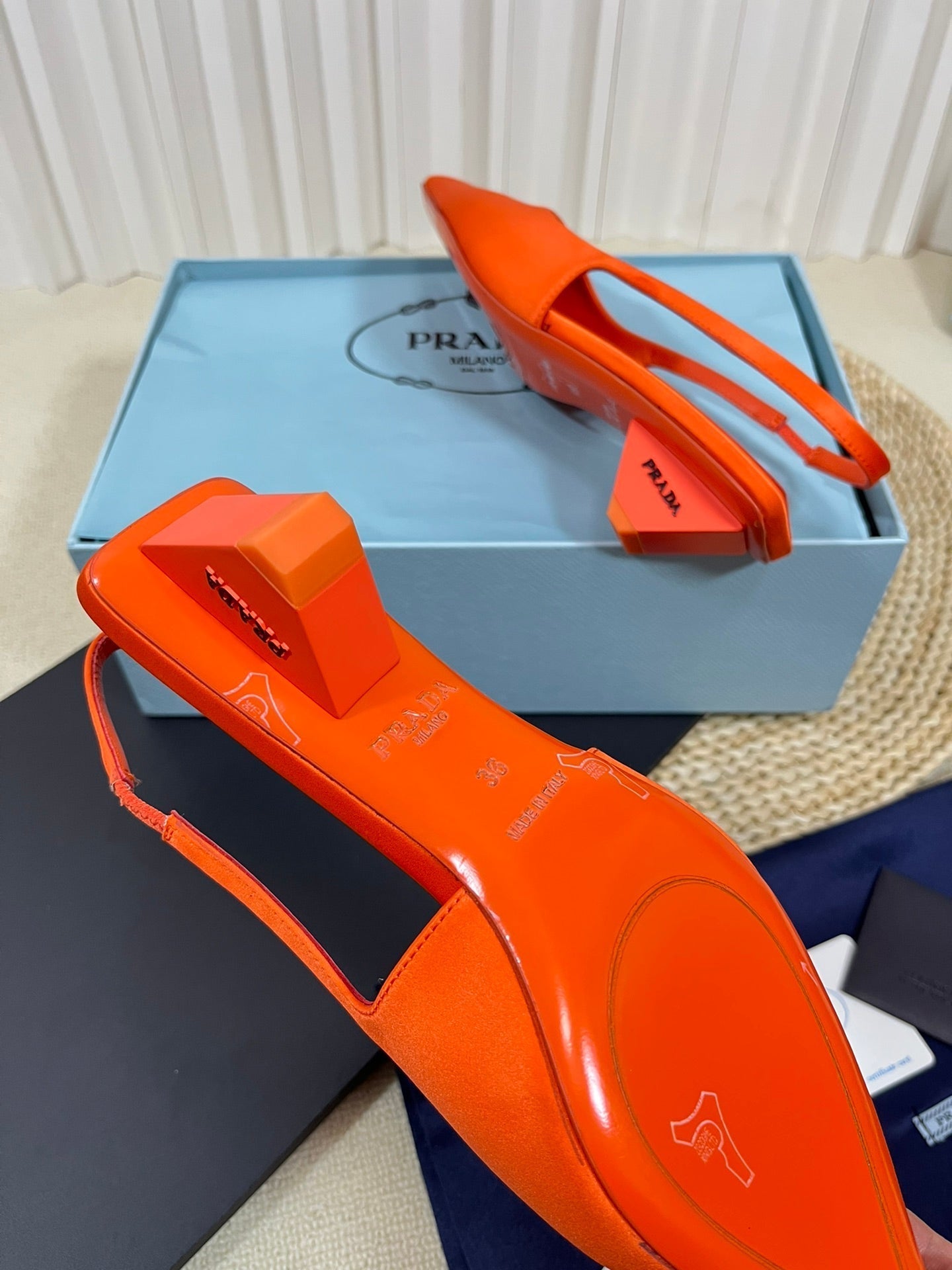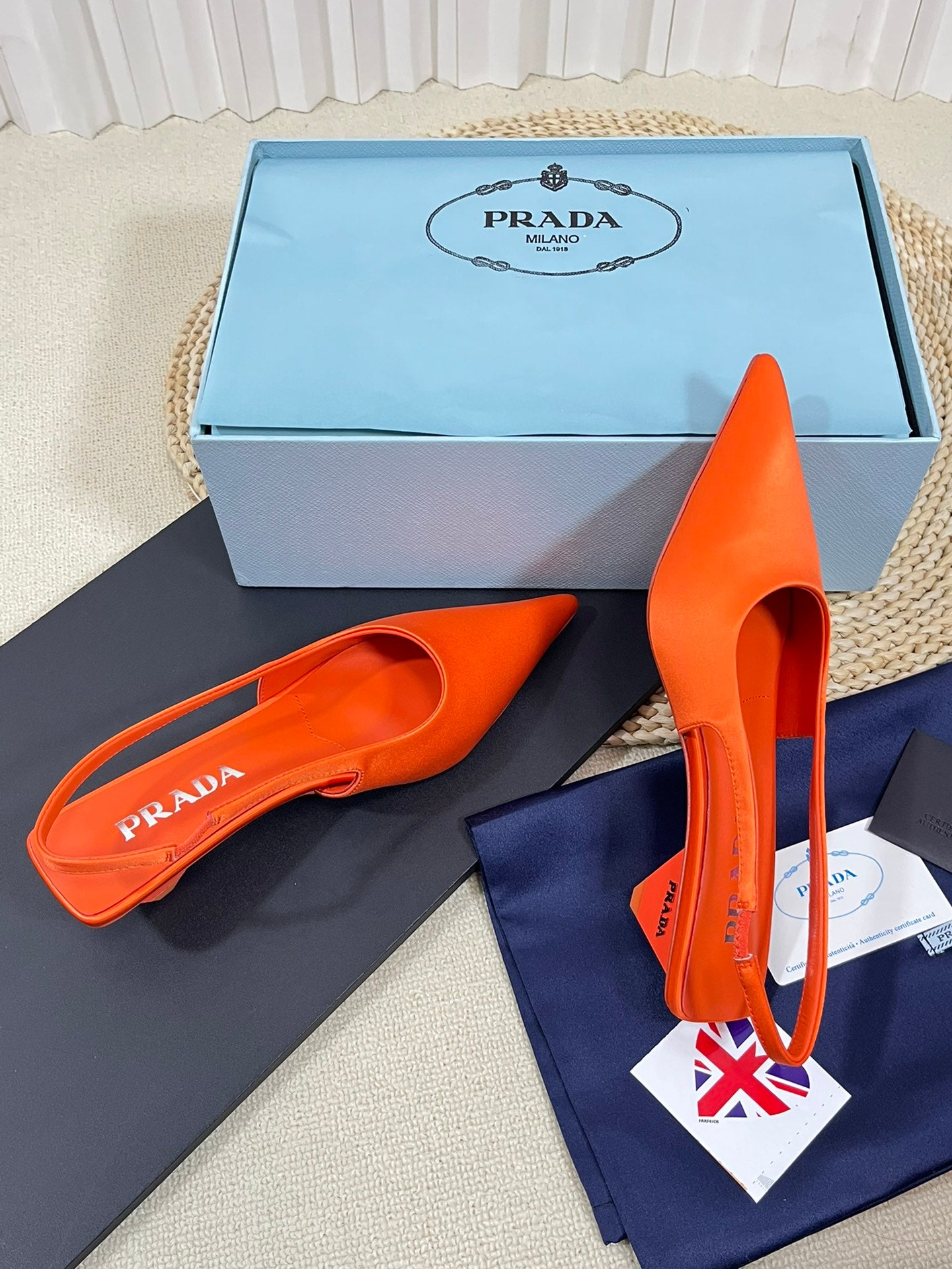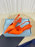 PRA POINTED TOE SLINGBACK PUMPS BRIGHT ORANGE SATIN