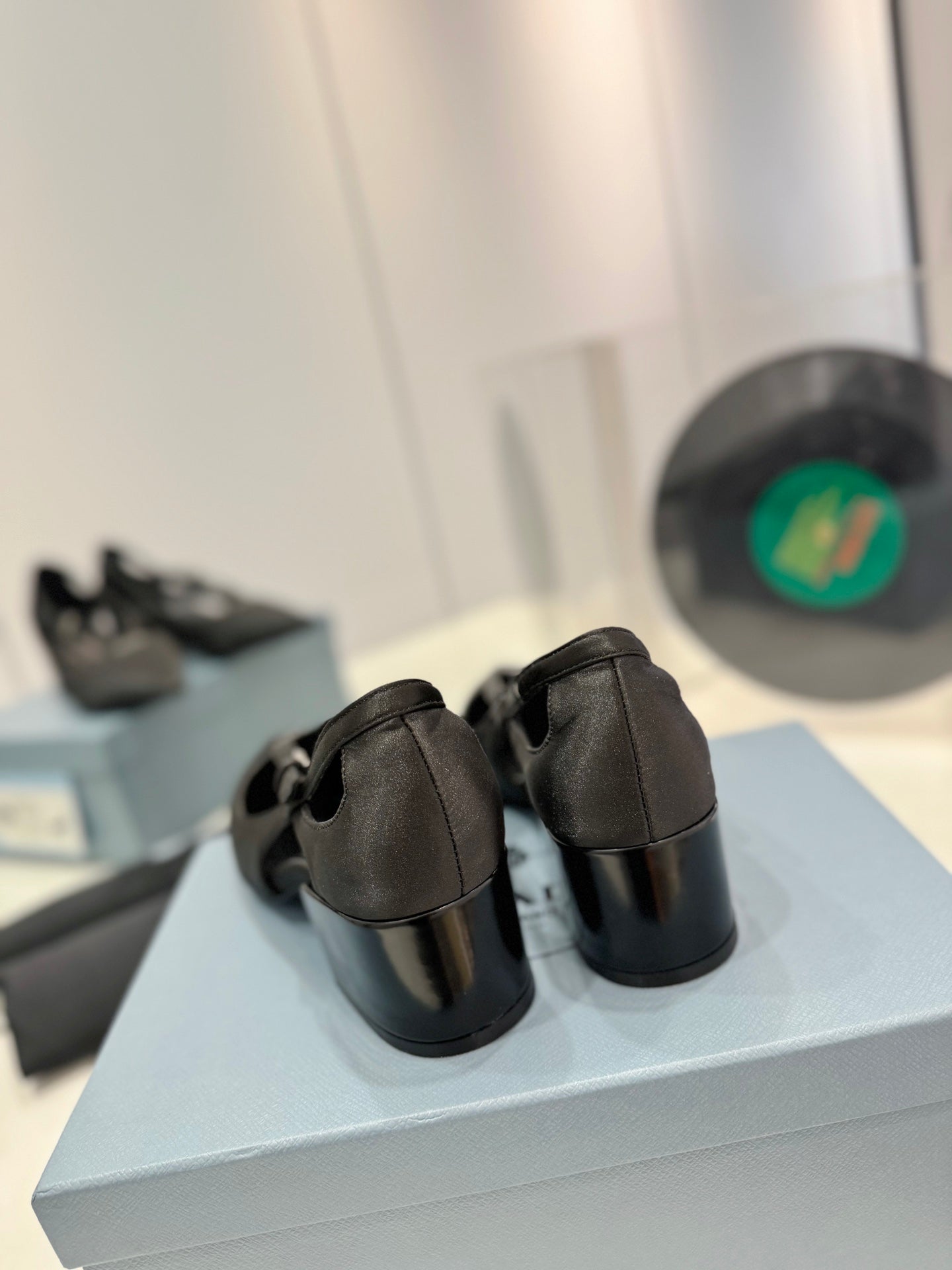 PRA STRAP CUT-OUT PUMPS BLACK SATIN