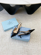 SLINGBACK PUMPS ATTACHED BOW IN BLACK GLOSSY CALFSKIN