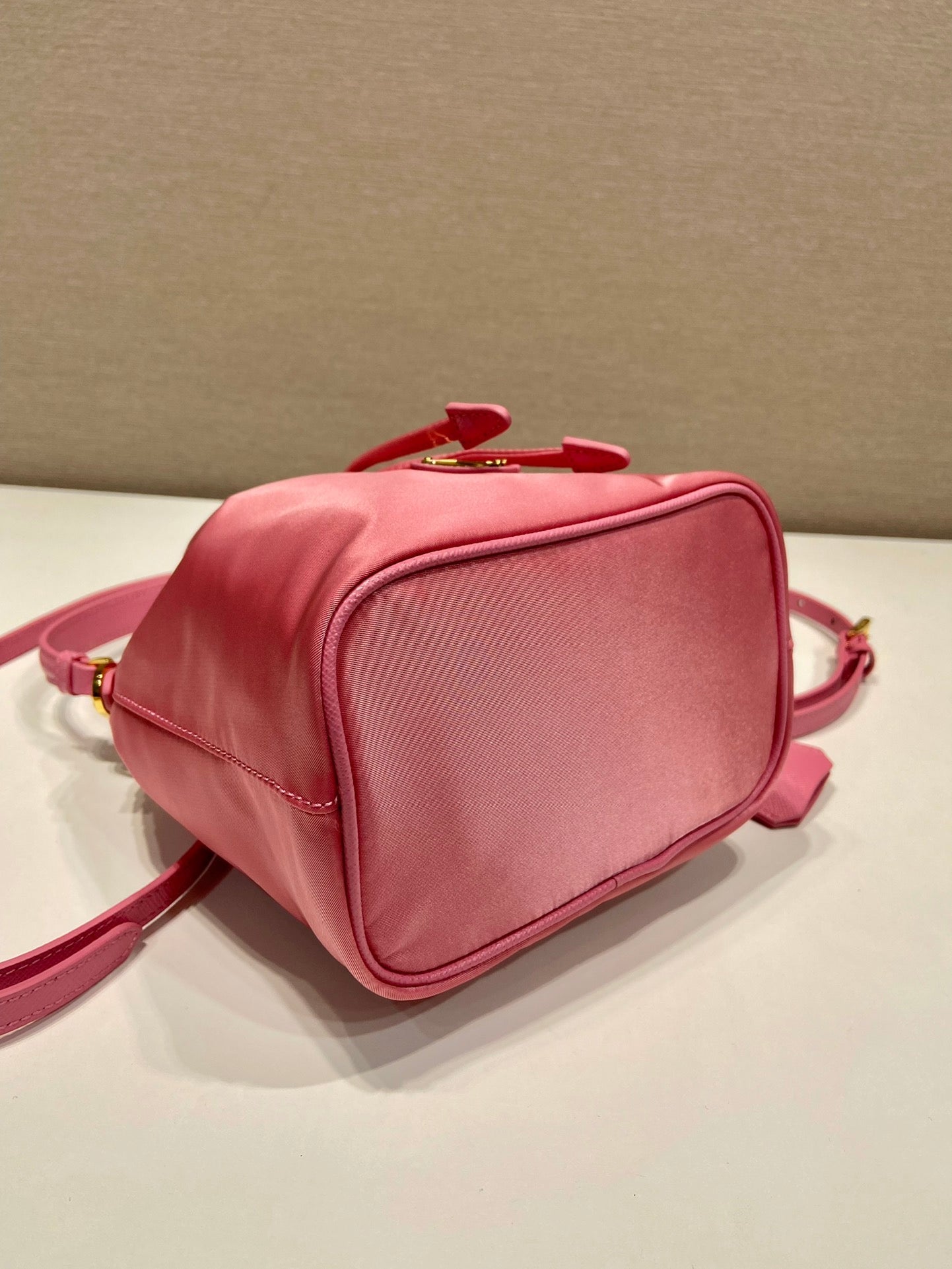 BUCKET BAG 19 IN CANDY PINK RE-NYLON AND SAFFIANO LEATHER HANDLE