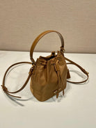 BUCKET BAG 19 IN RUSSET BROWN RE-NYLON AND CALFSKIN HANDLE