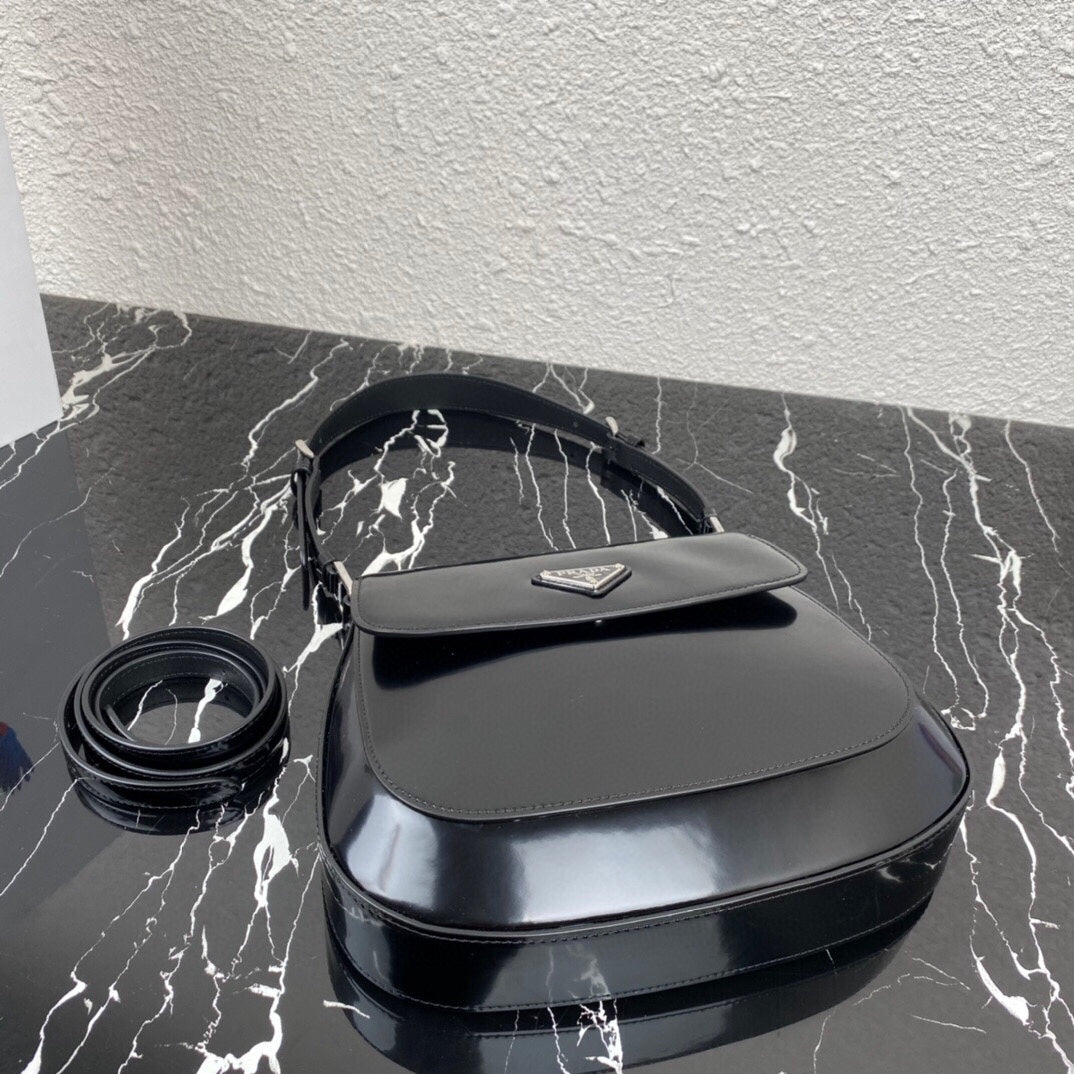 CLEO 24 BLACK BRUSHED LEATHER SHOULDER BAG