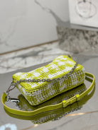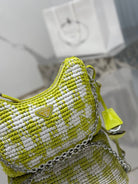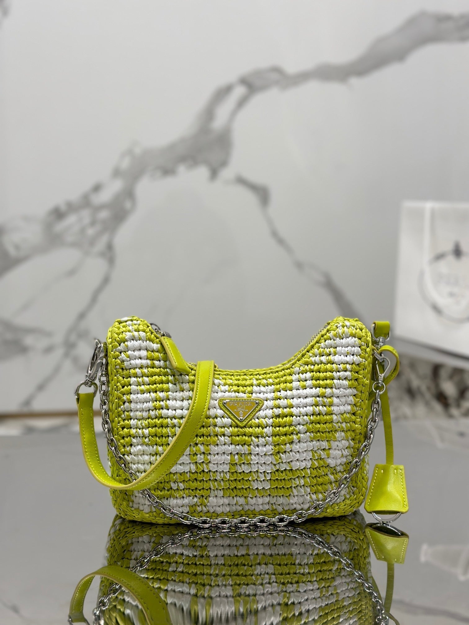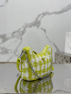 CROCHET HOBO BAG 22 IN VOLT GREEN MIX WHITE RAFFIA SILVER HARDWARE