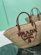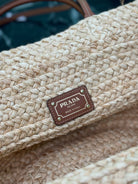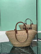 LARGE TOTE BAG 56 IN BEIGE RAFFIA GRASS AND BROWN CALFSKIN TRIM