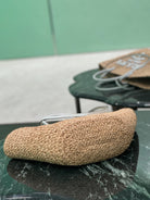 • Material: Raffia grass and calfskin trim