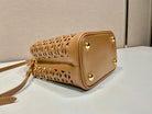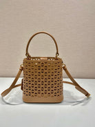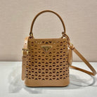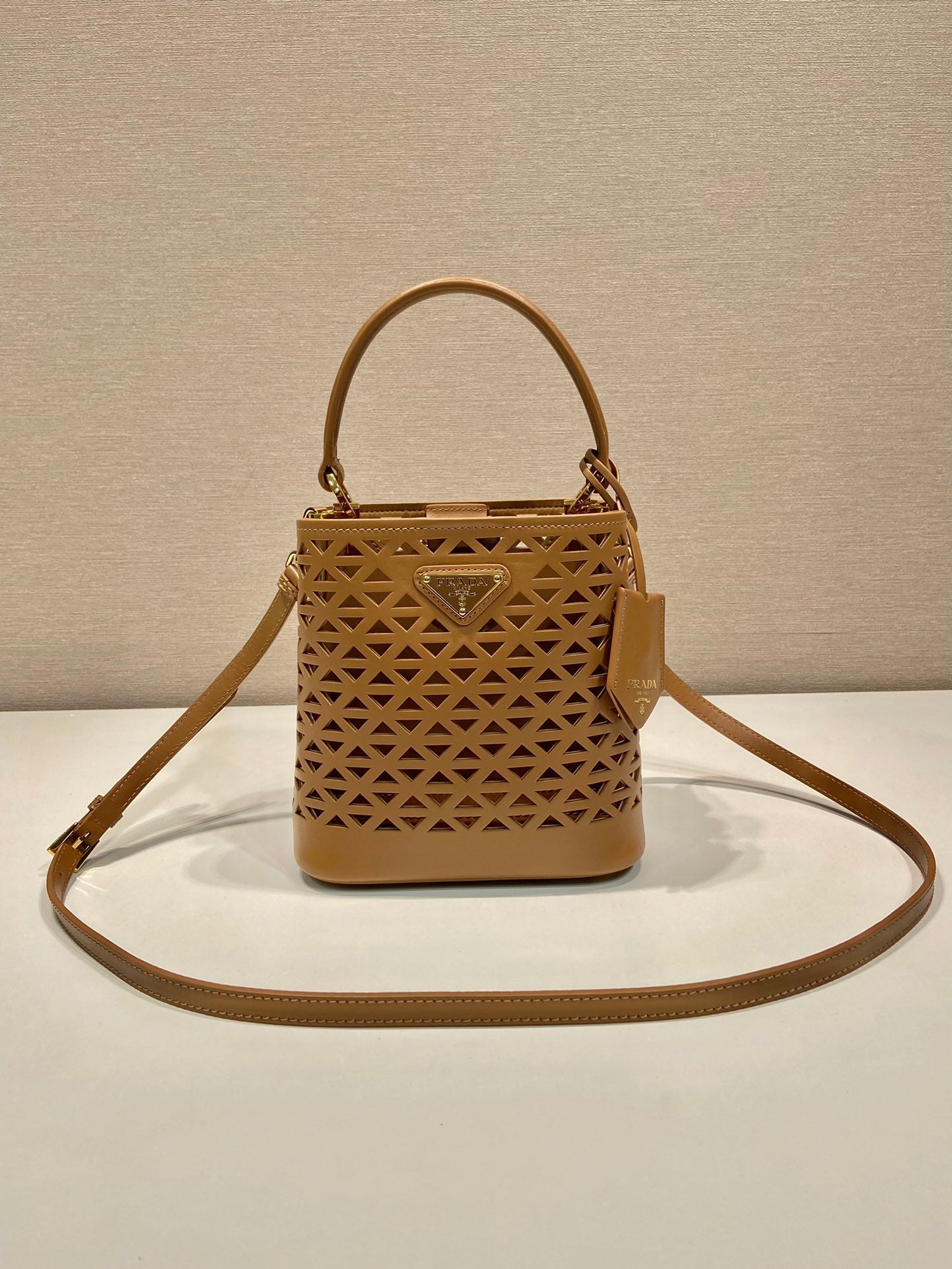 LASER-CUT BUCKET BAG 18 IN CINNAMON BROWN CALFSKIN