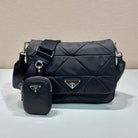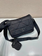 MEDIUM FLAP BAG 24 IN BLACK TRIANGULAR QUILTED PATTERN RE-NYLON
