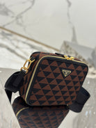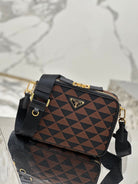 MESSENGER BAG 22 IN BLACK AND BROWN EMBROIDERED FABRIC GOLD HARDWARE