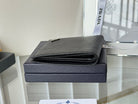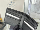 Pra 2M0513 Metal Triangle Logo Wallet 11cm Black lychee-grained cowhide