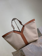 Prada Y Tote Bag Beige Brown Canvas Leather