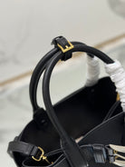 TOTE BAG WITH BELT 32 IN BLACK IMPORTED CALFSKIN