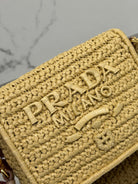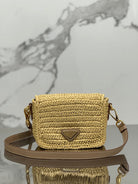 WOVEN SMALL FLAP BAG 16 IN BEIGE RAFFIA GOLD HARDWARE