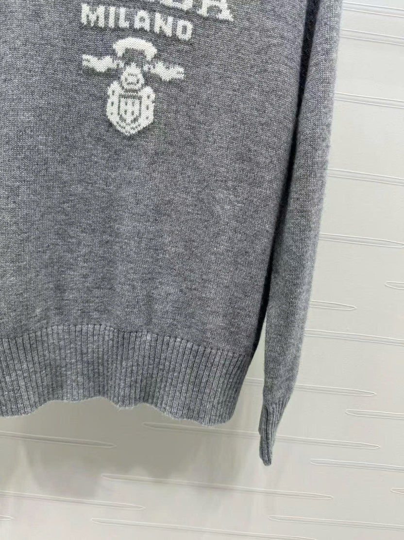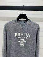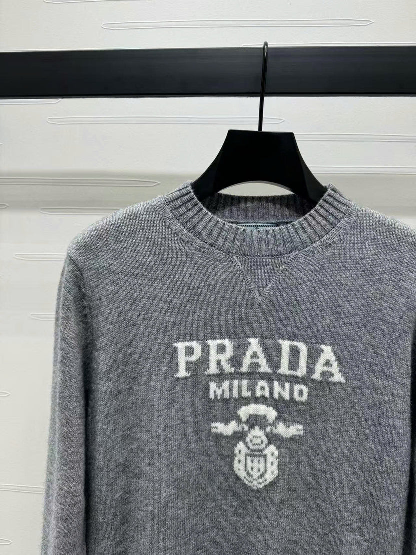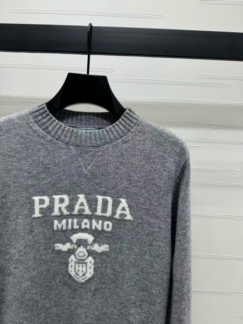 Prad Logo Crew-Neck Sweater in Natural Wool