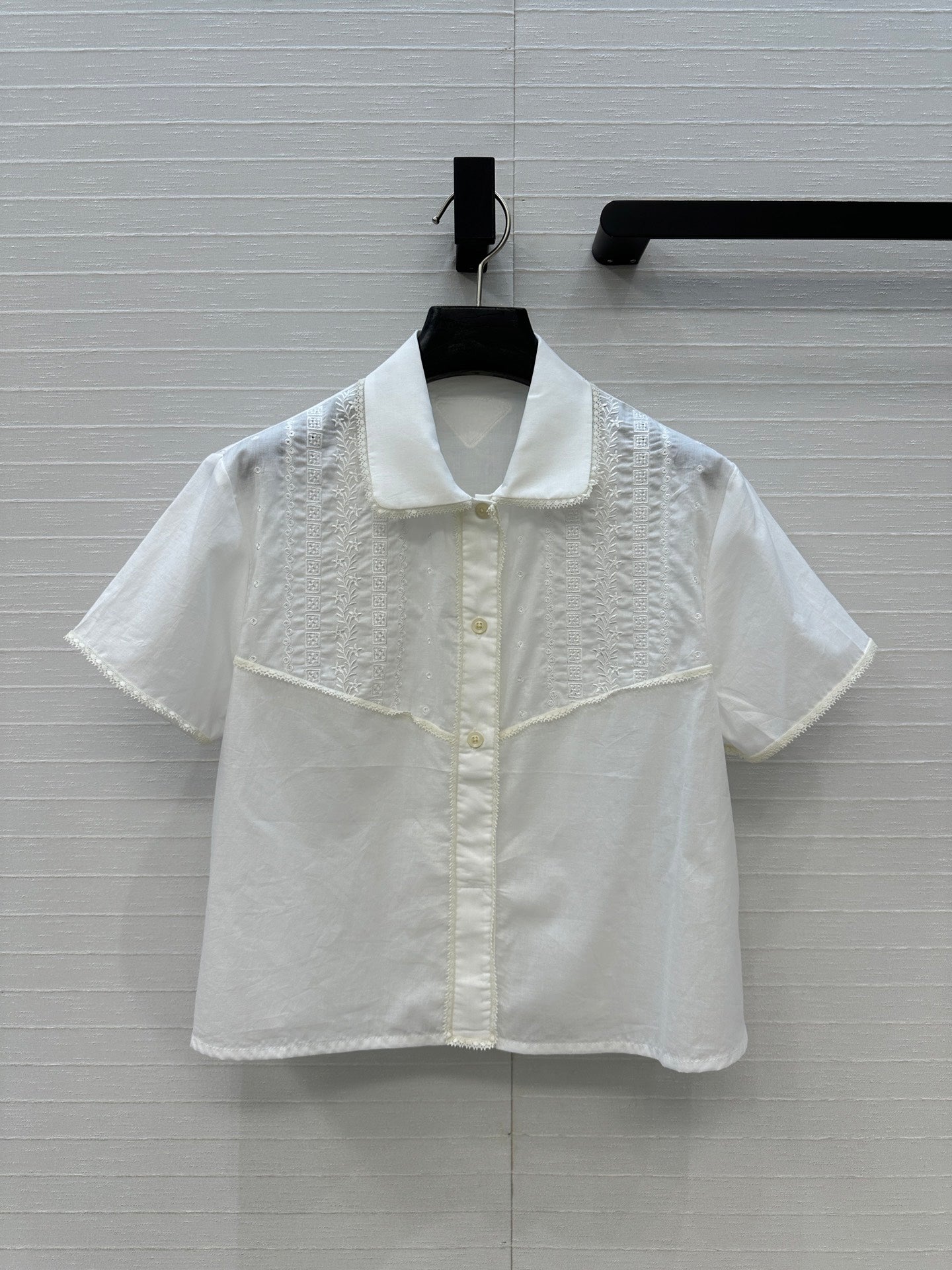 Prada 25 Lace Short-sleeved Shirt White Cotton