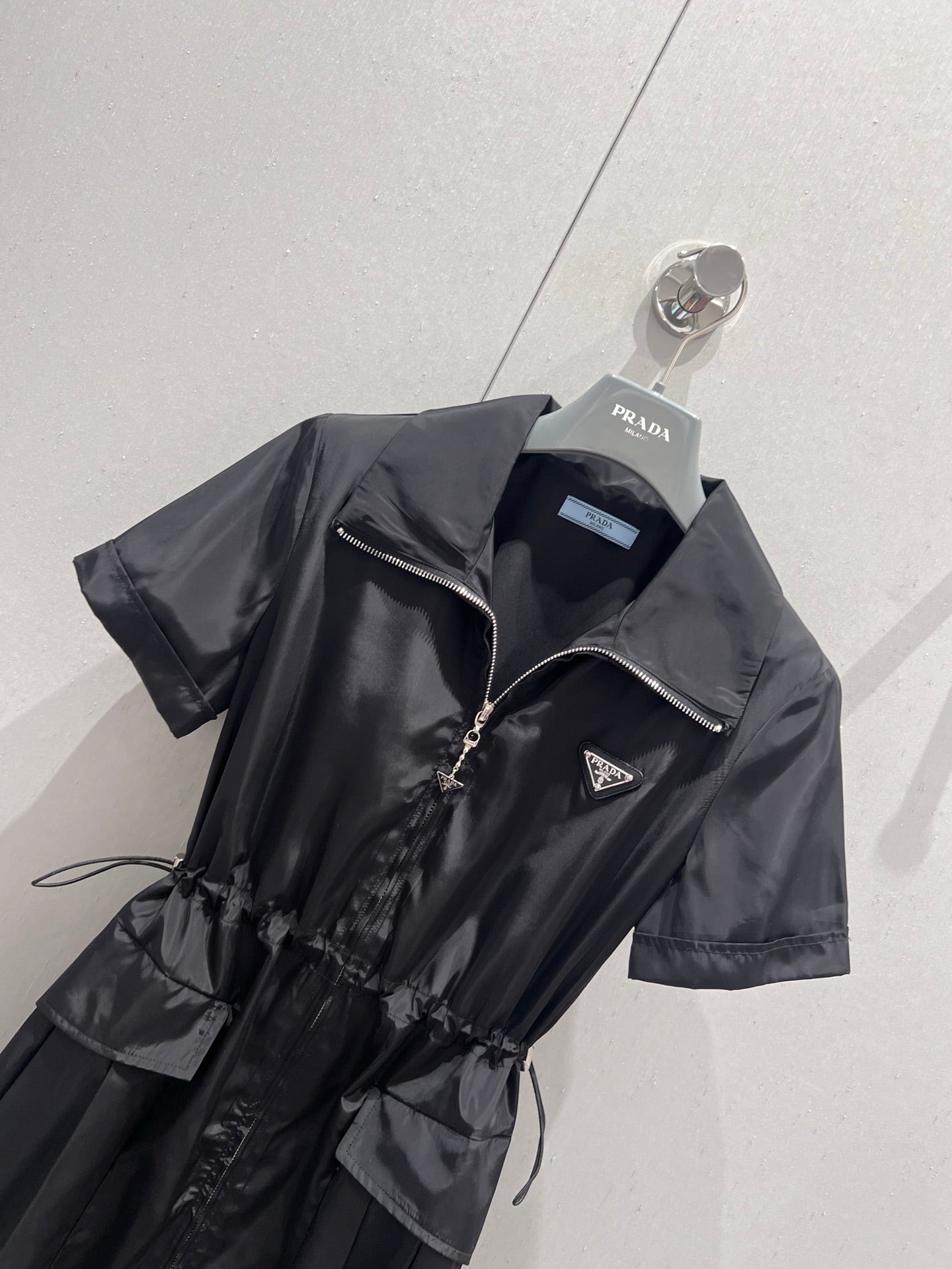 Prada 25 Short Sleeve Zipper Dress Black Polyester 218738