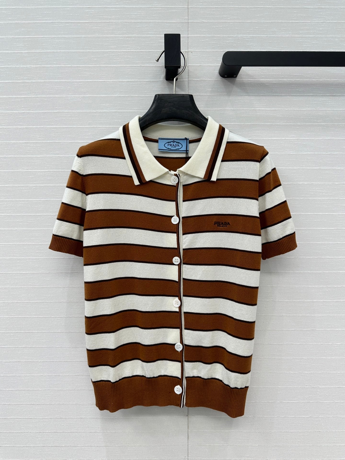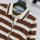 Prada 25 Striped Short-sleeved Knitted Cardigan Brown white Cotton
