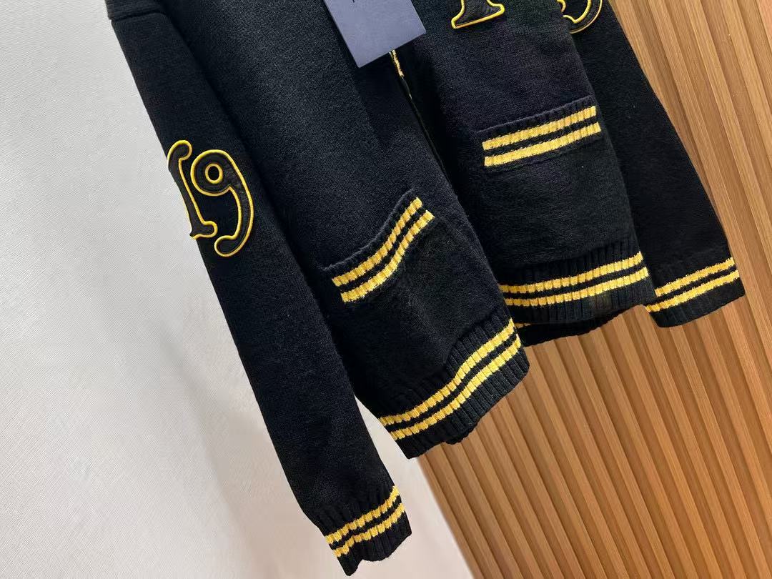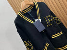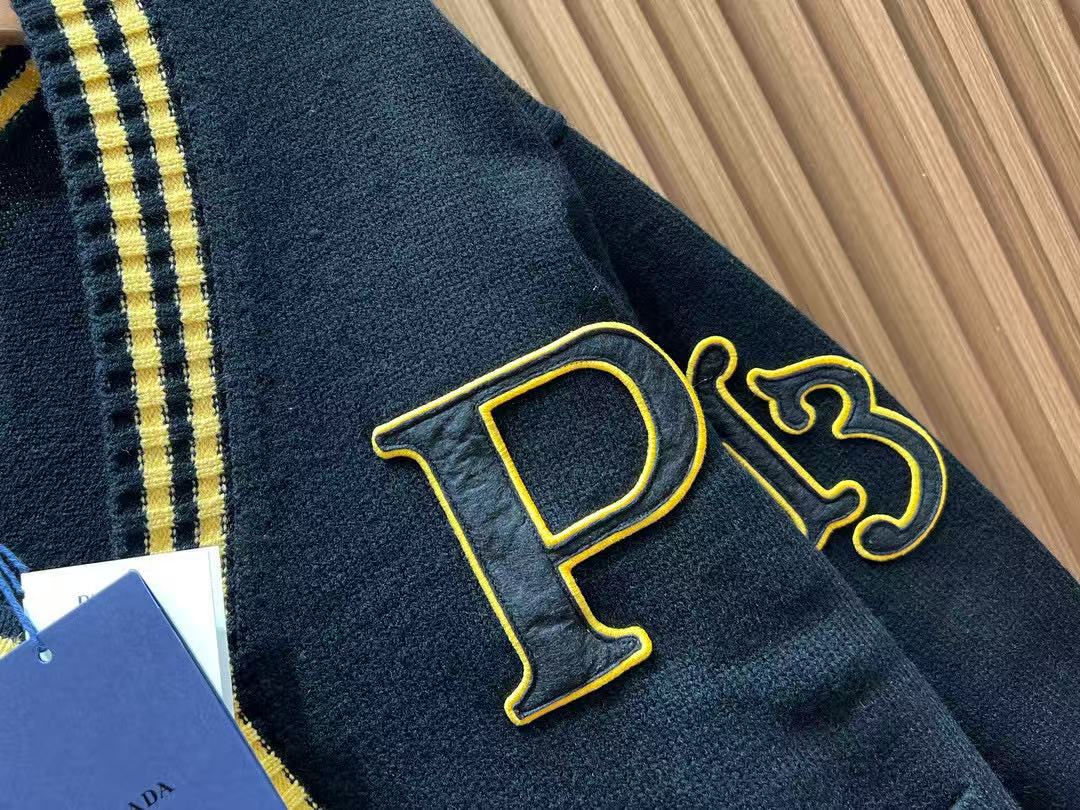 Prada Logo-appliquéd Cardigan Black Yellow Wool Cashmere