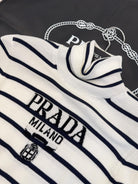 Prada Striped Knitted Turtleneck Sweater Black mix White Wool