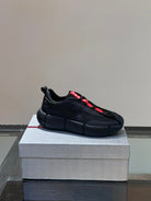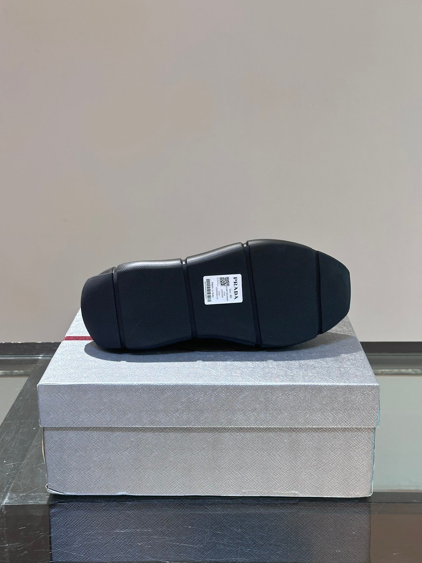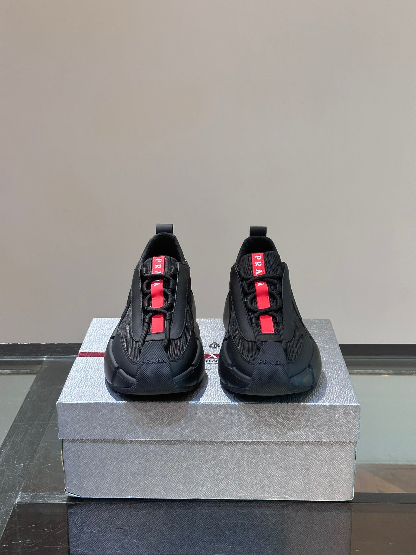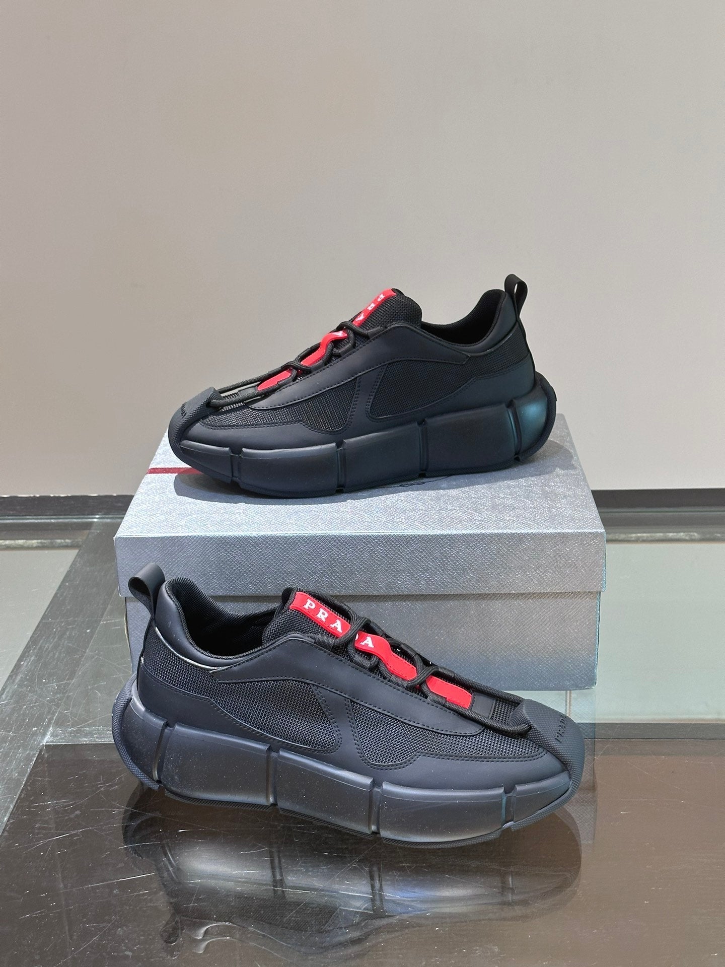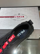 • Material: Cowhide Upper with Breathable Mesh Panels, Soft and Comfortable, Breathable Tongue Decorated with PRADA Brand Letter Logo, Rubber Thick Sole with Red Tag Tongue Echo