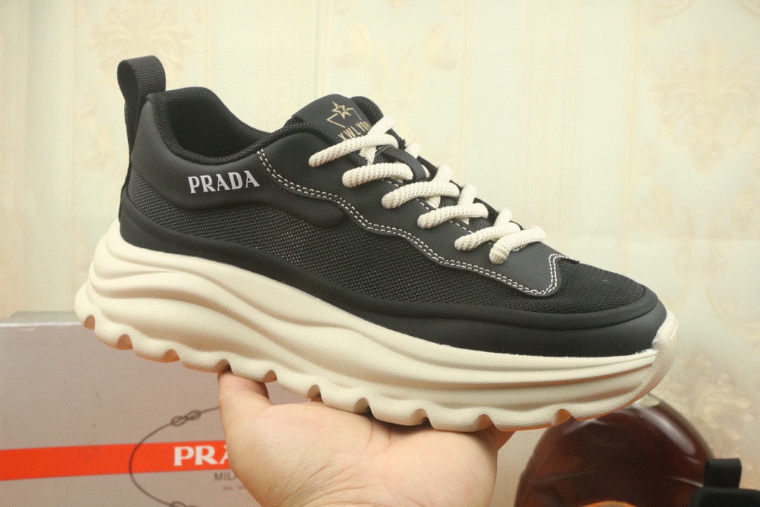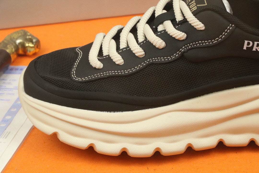 PRA SNEAKER IN BLACK CALFSKIN AND BREATHABLE MESH