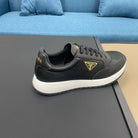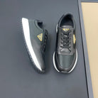 PRA SNEAKER IN BLACK CALFSKIN AND FABRIC WITH GOLDEN LOGO