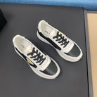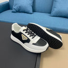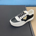 PRA SNEAKER IN WHITE CALFSKIN AND BLACK FABRIC WITH GOLDEN LOGO