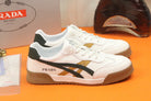 PRA SNEAKER IN WHITE CALFSKIN WITH BLACK AND YELLOW STRIPED