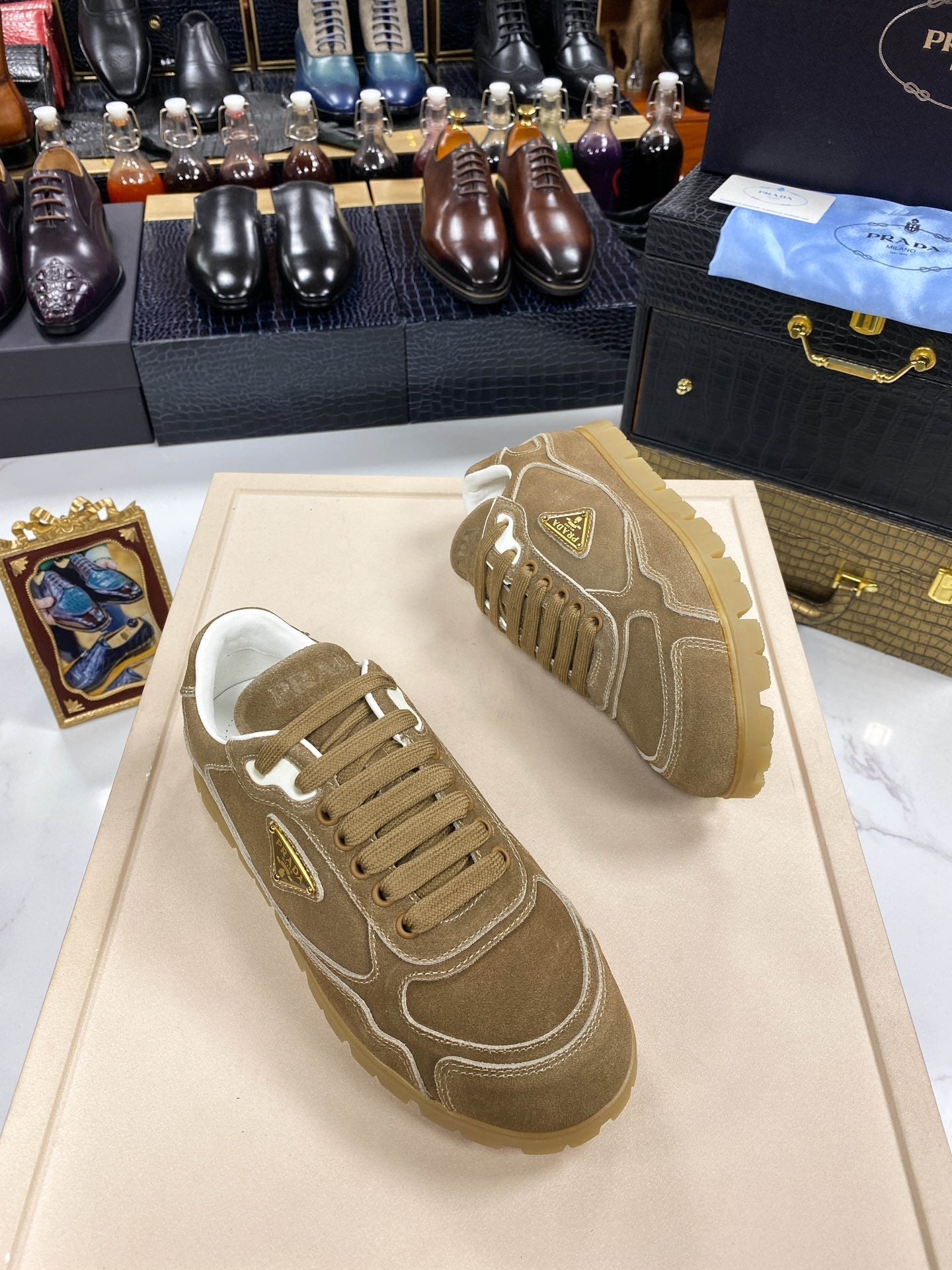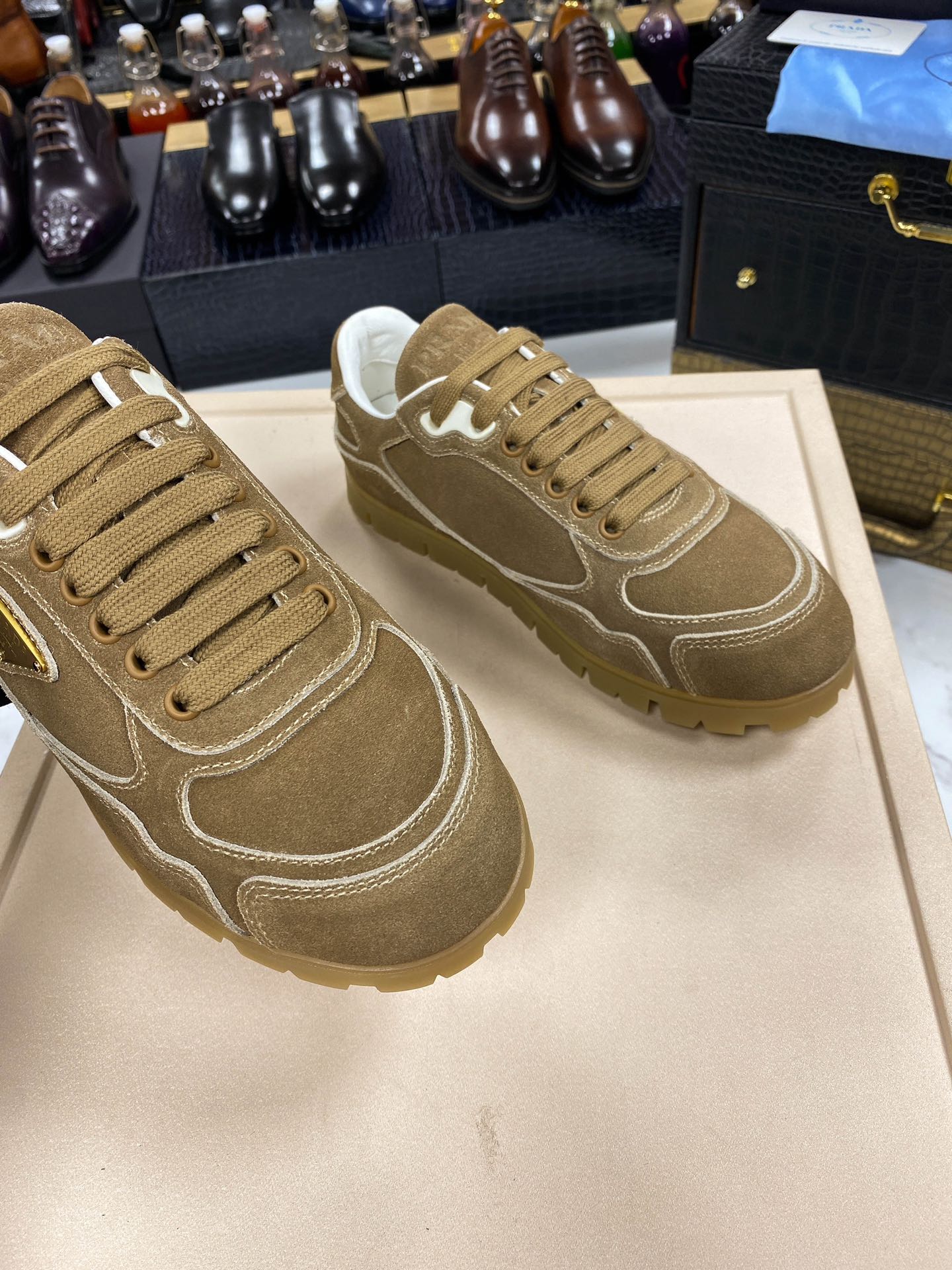 PRA TRAIL FADED CINNAMON BROWN SUEDE SNEAKERS