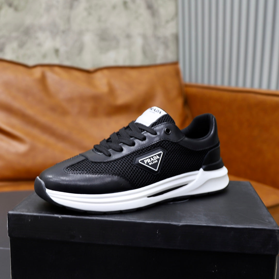 PRA SNEAKER IN BLACK CALFSKIN AND MESH FABRIC