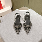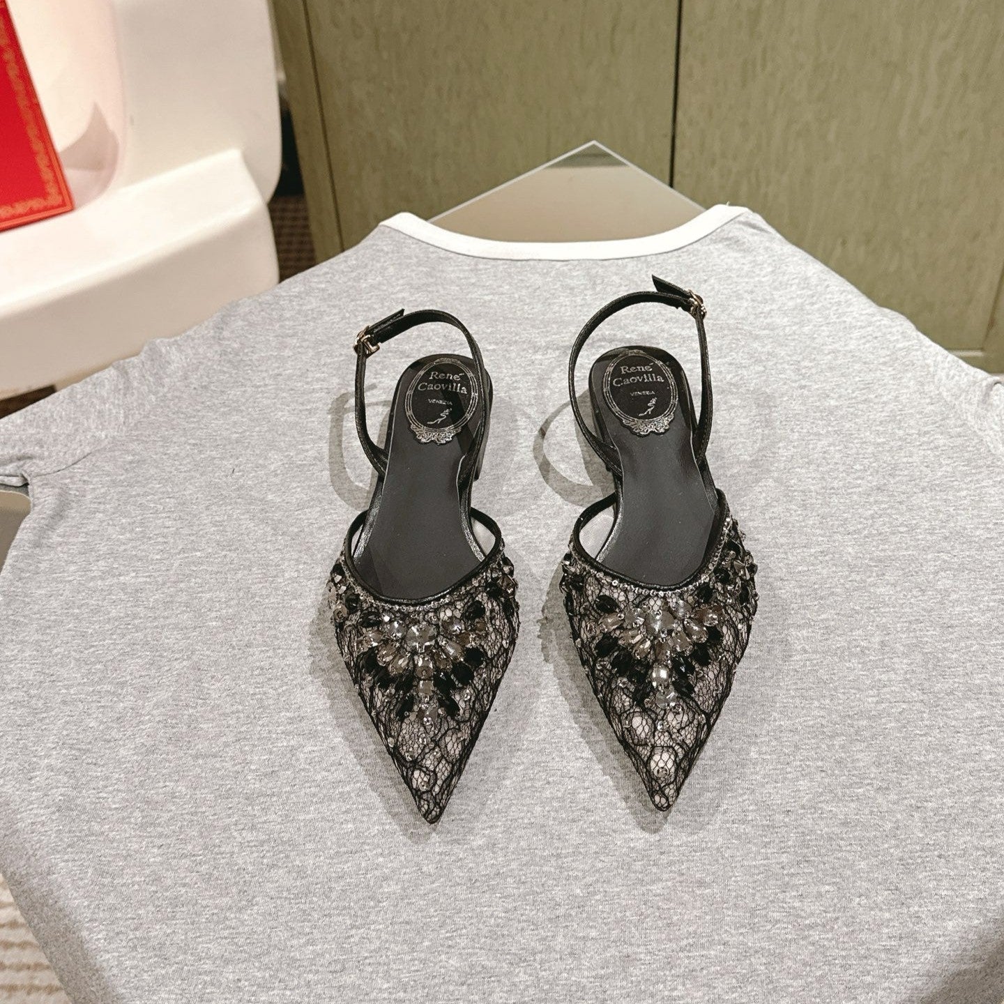 RC 25 Diamond Lace High Heeled Sandals Black Sheepskin 268055