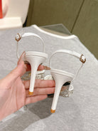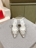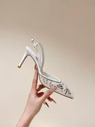 RC 25C Slingback Diamond High Heel 8cm White Silk Rhinestones 268078