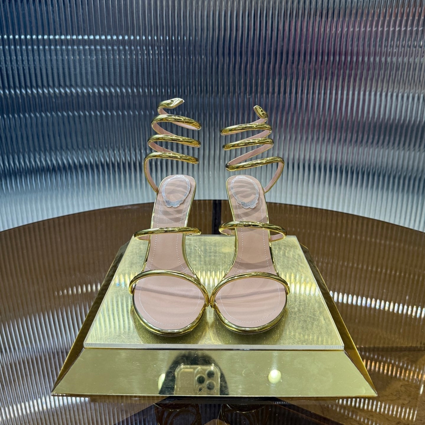 RC 25C Snake-Shaped Sandals 9.5cm Gold Sheepskin 310629