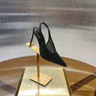 RC Slingback Shoes Black Rhinestone Sheepskin 281981