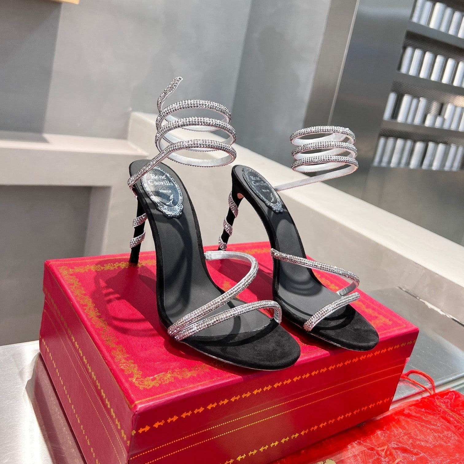 RC 25 Crystal Diamond Snake-Shaped High-Heeled Black Silk Rhinestones 253542