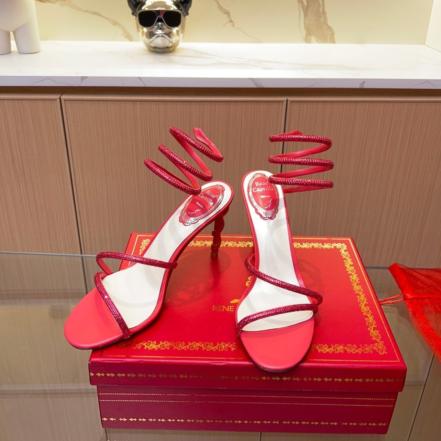 RC 25 Snake-Shaped High-Heeled Sandals Dark Red Silk Rhinestones 268061