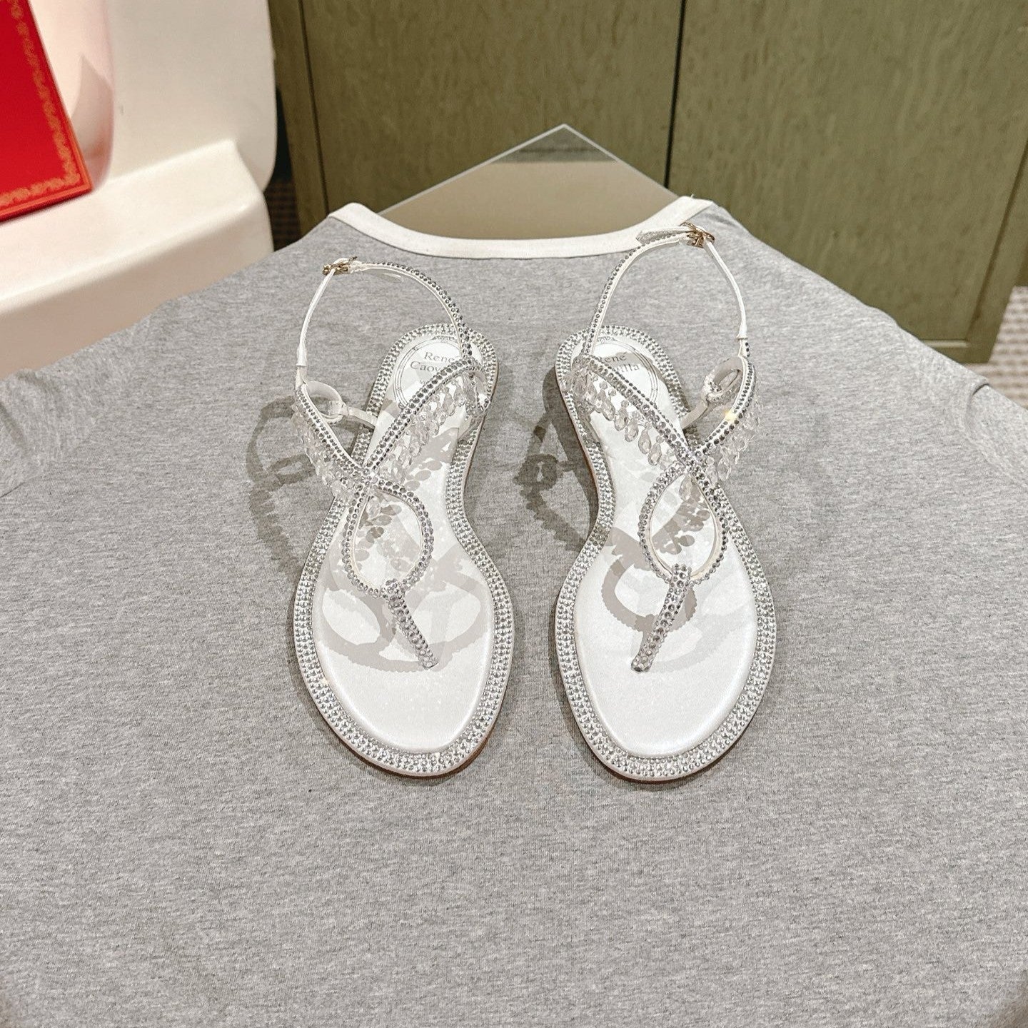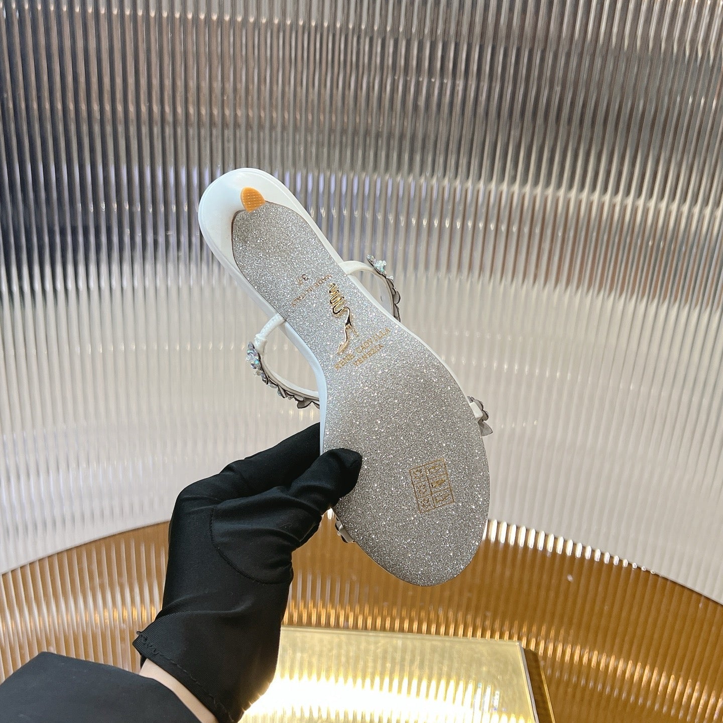 RC 25 Thong Diamond Flat Sole White Silk Rhinestones 268068