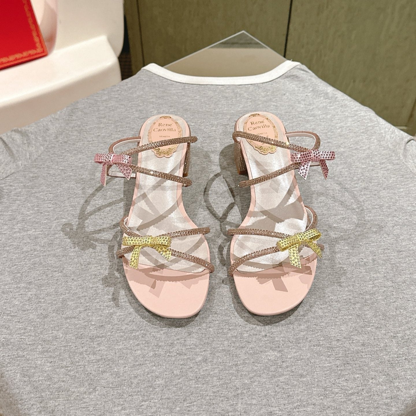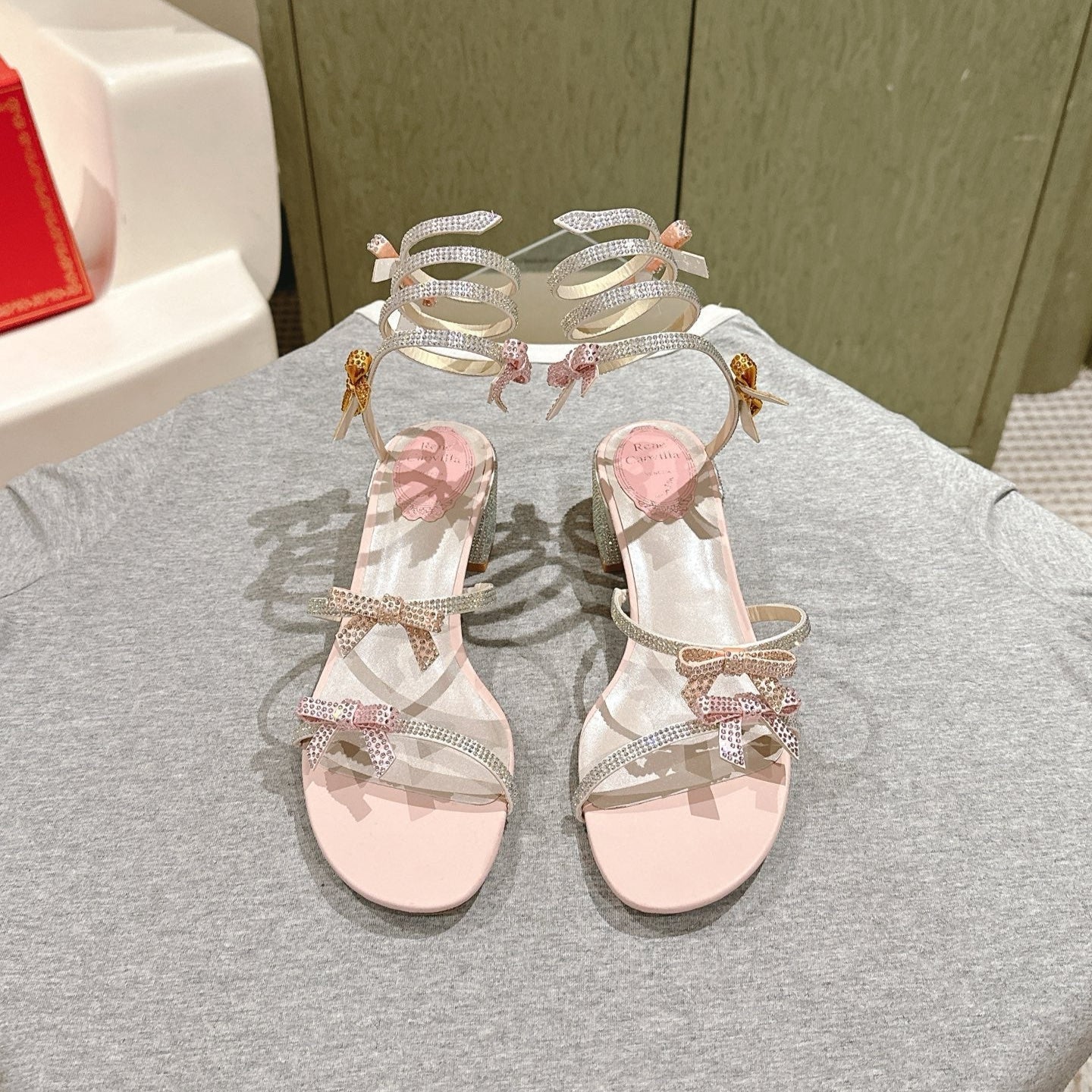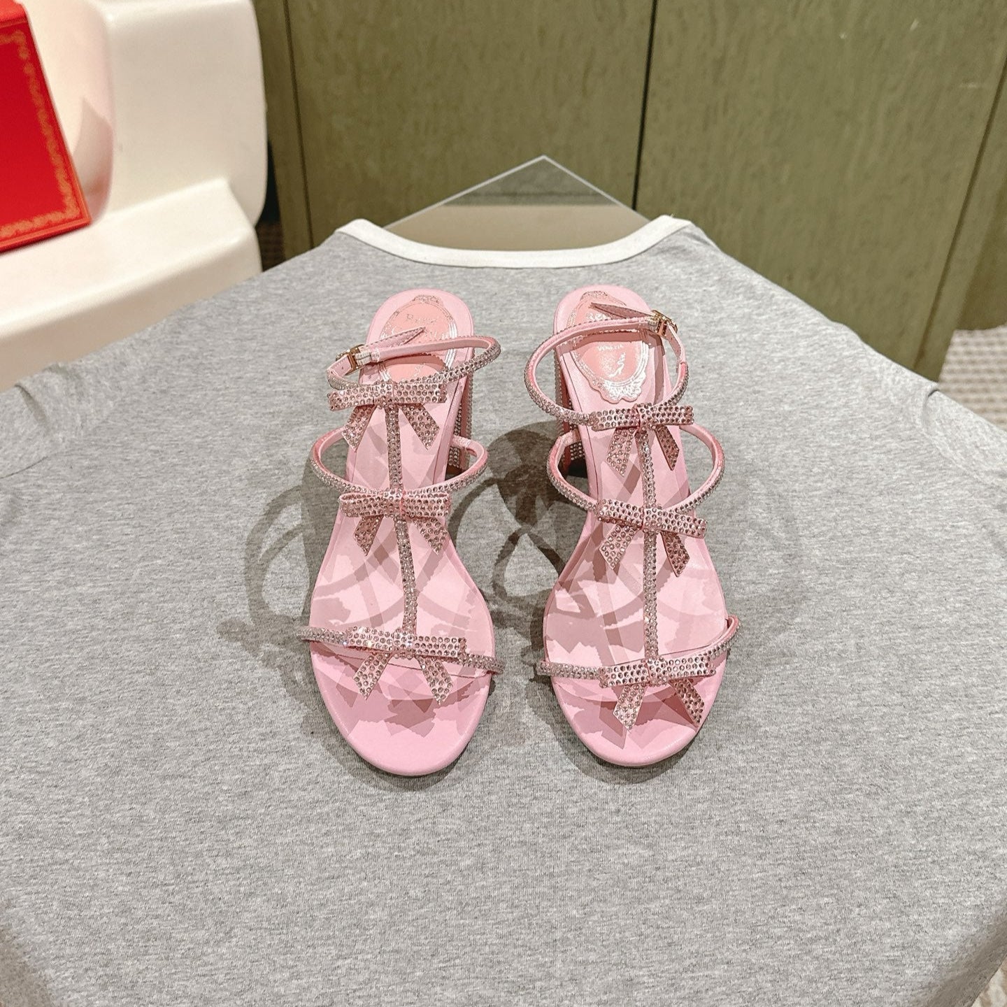 RC 25 Add Bow Diamond Sandals 4.5cm Pink Silk Rhinestones 268073