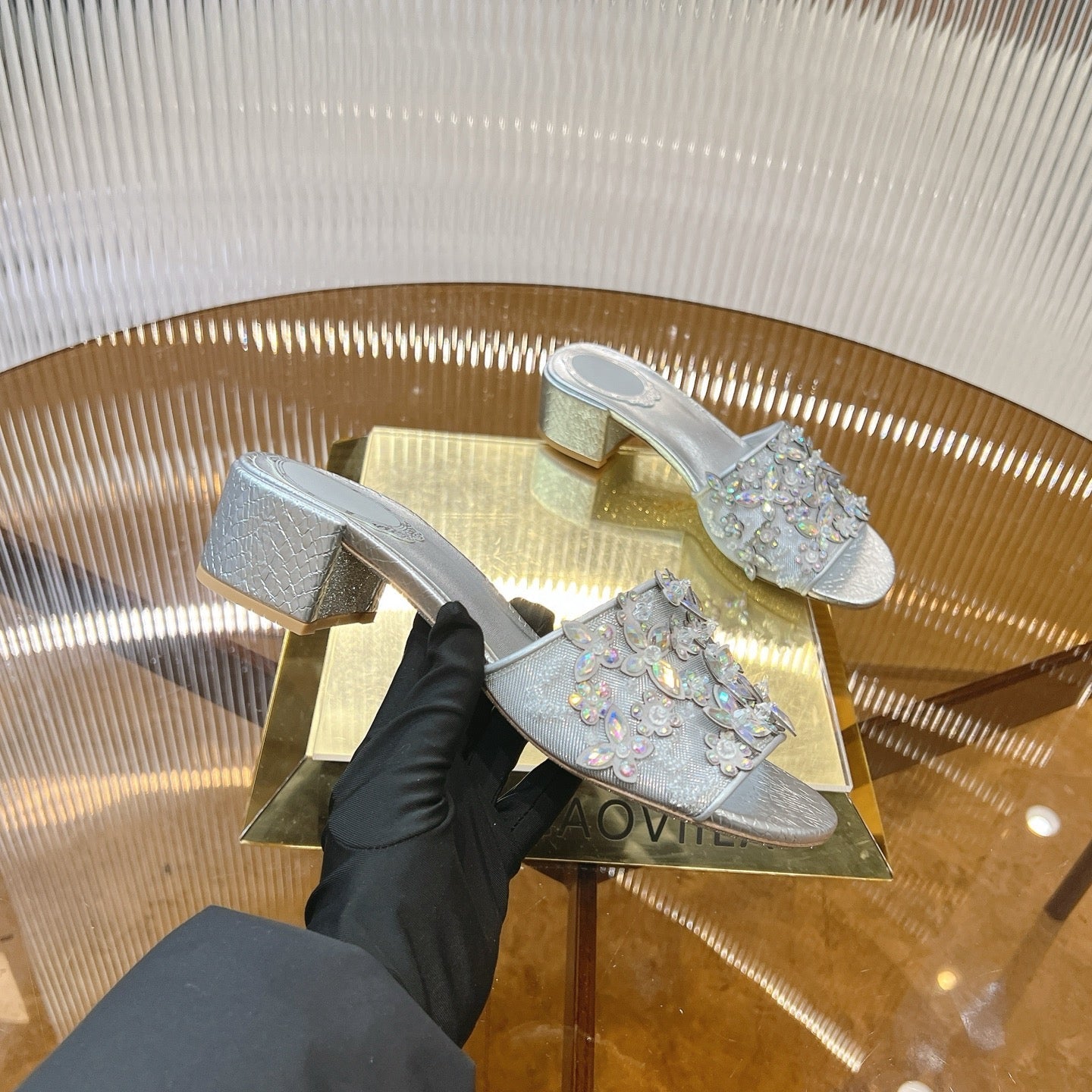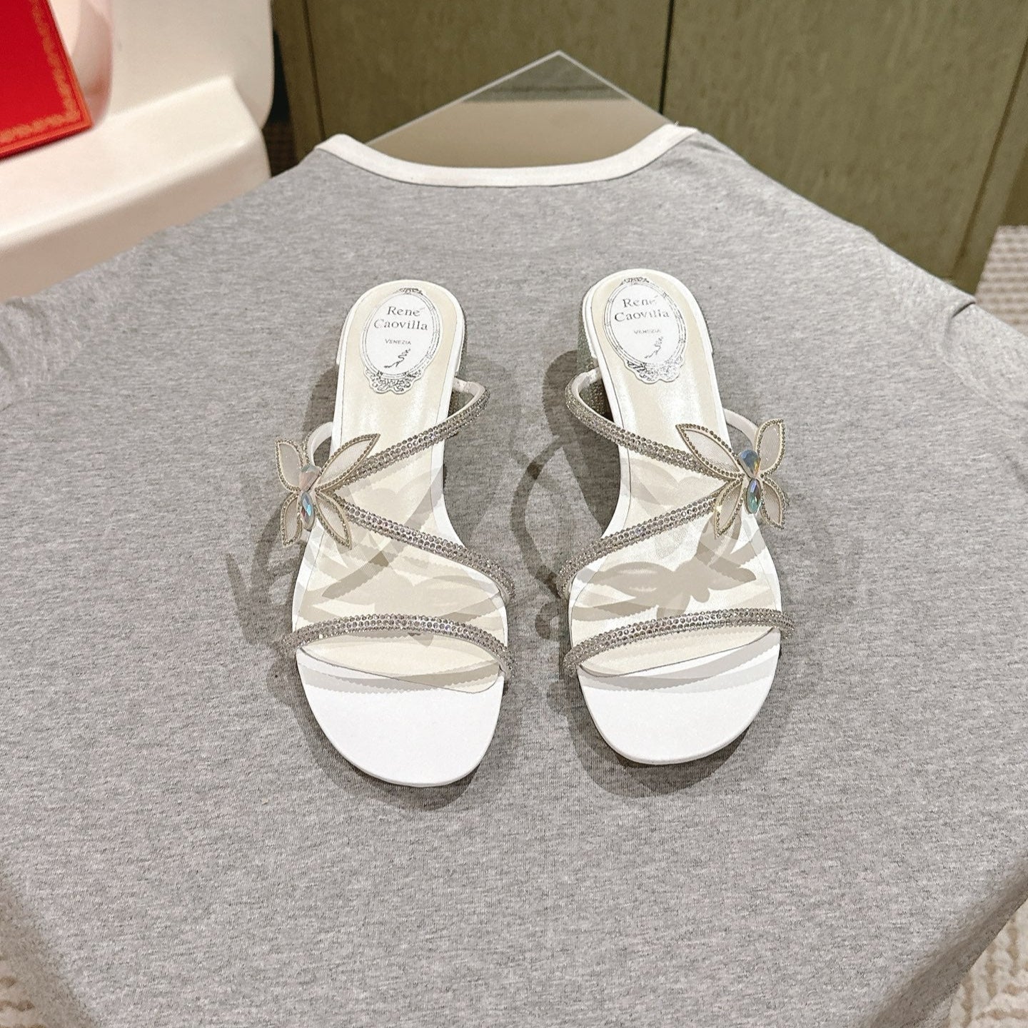 RC 25C Butterfly Diamond Sandals 4.5cm White Silk Rhinestones 268074
