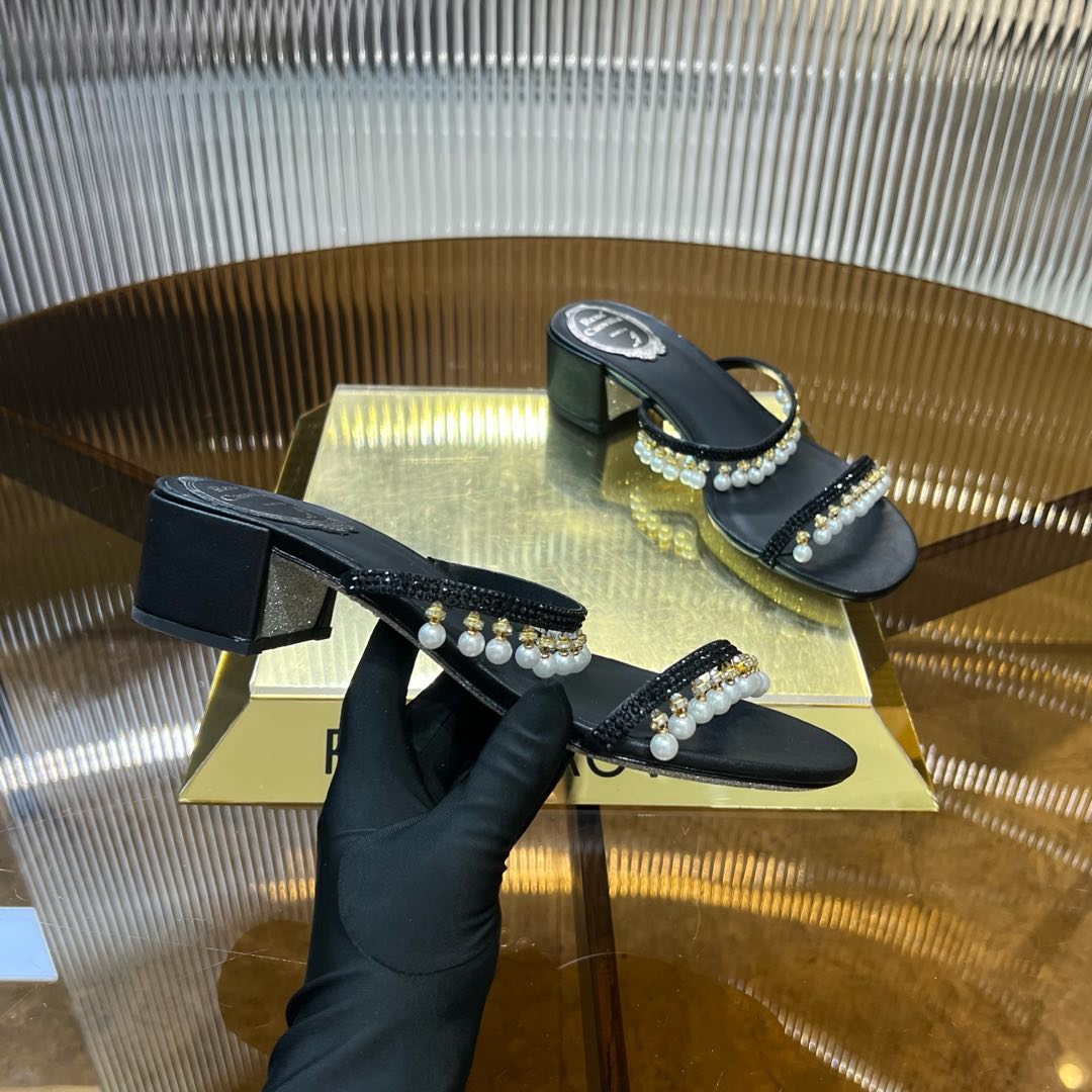 RC 25 Crystal Tassel High-Heeled Sandals Black Silk Crystal Diamond 253539