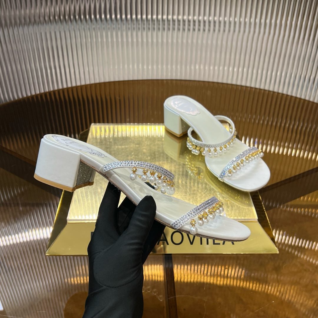 RC 25 Crystal Tassel High-Heeled Sandals White Silk Crystal Diamond 253540