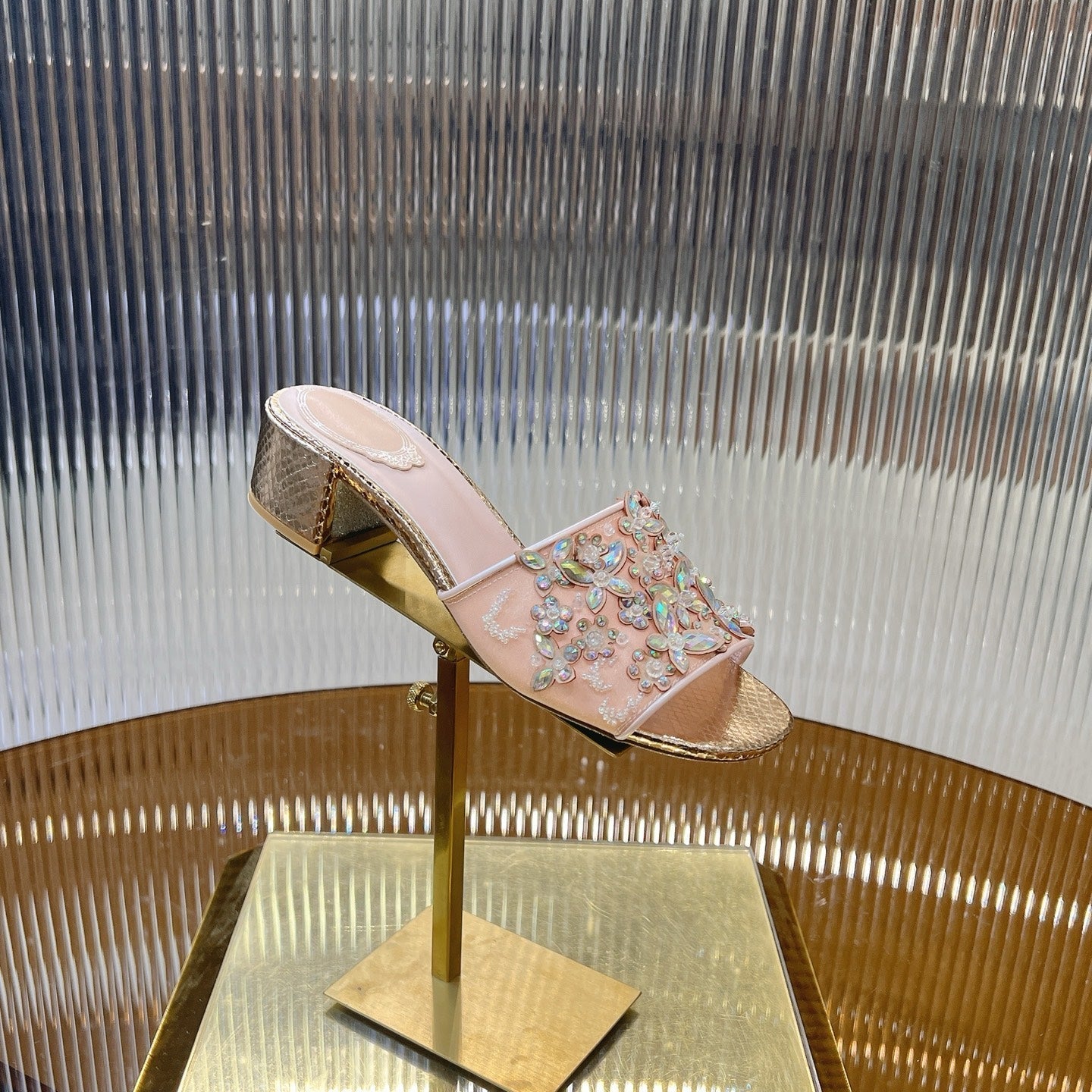 RC 25 Diamond Lace High Heeled Sandals Pink Nude Sheepskin 268056