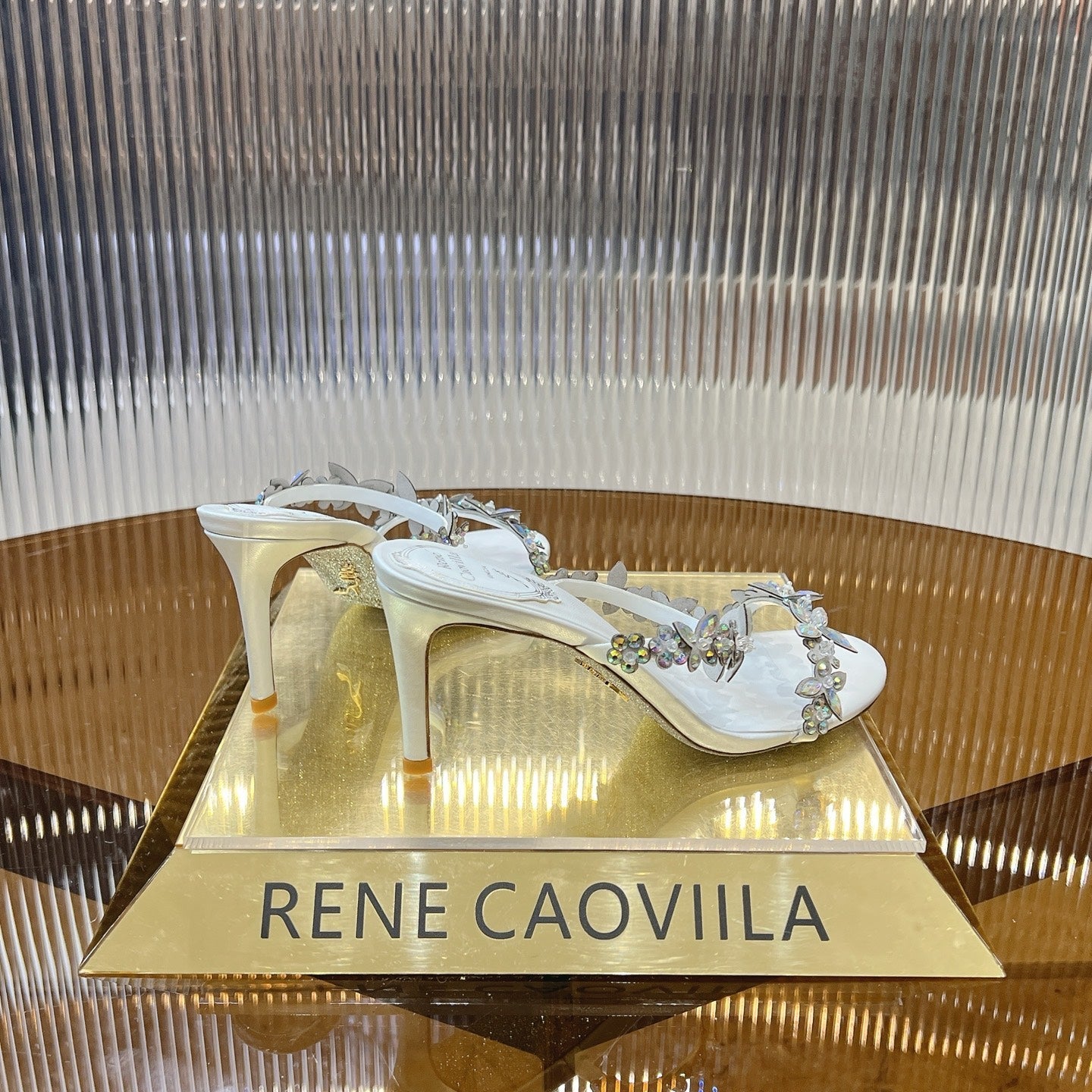 RC 25 Butterfly High-Heeled Sandals White Silk Rhinestones