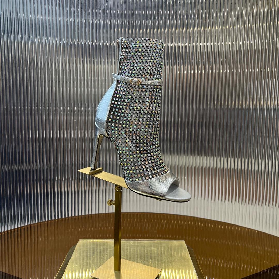 RC 25C High Heel Short Boots Mid-Tube Open-Toe Sandals Grey Sheepskin 174973