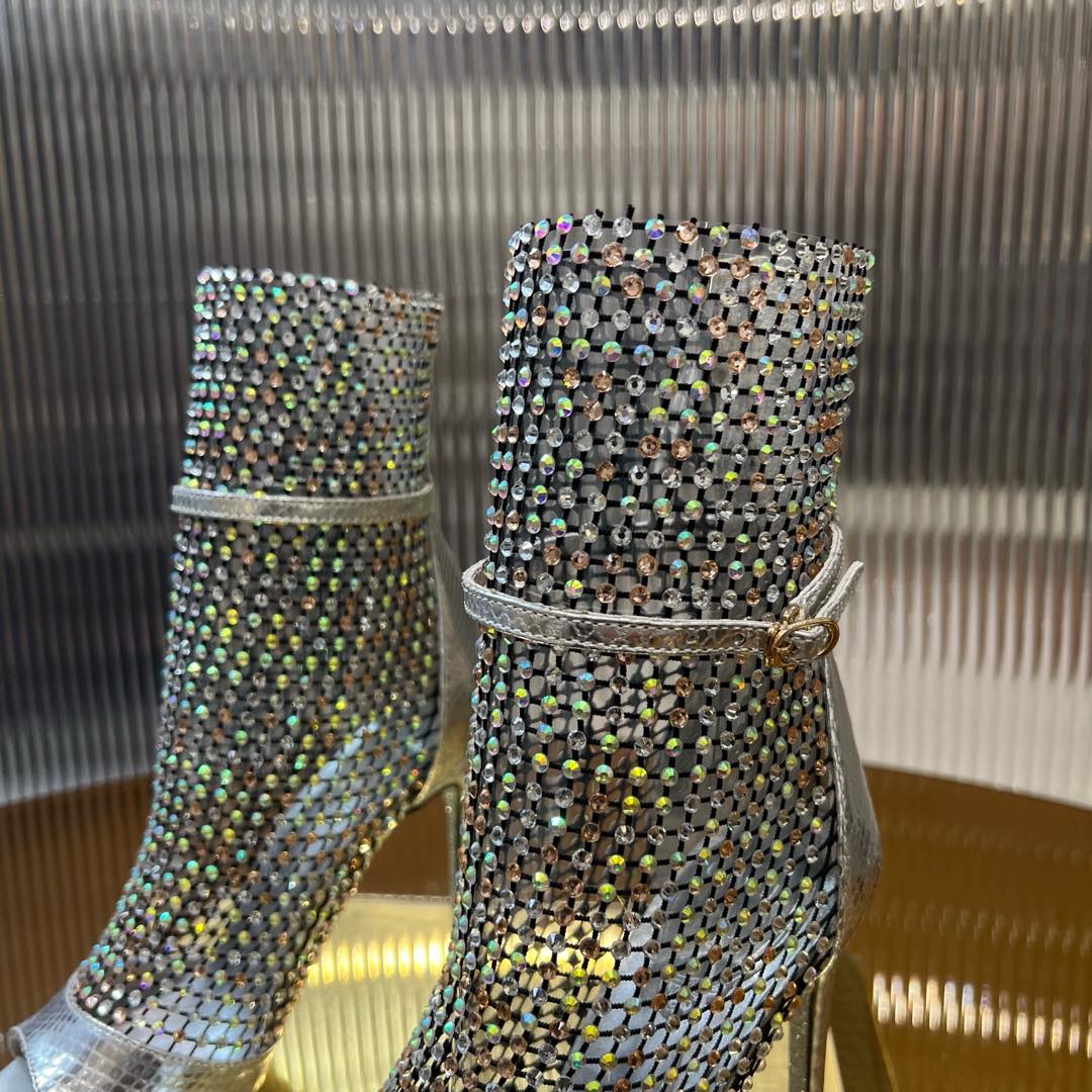 RC 25C High Heel Short Boots Mid-Tube Open-Toe Sandals Gold Sheepskin 174957